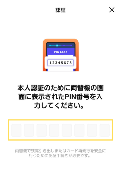 WOWPASS機械に表示された認証コードをWOWPASSアプリに入力します。